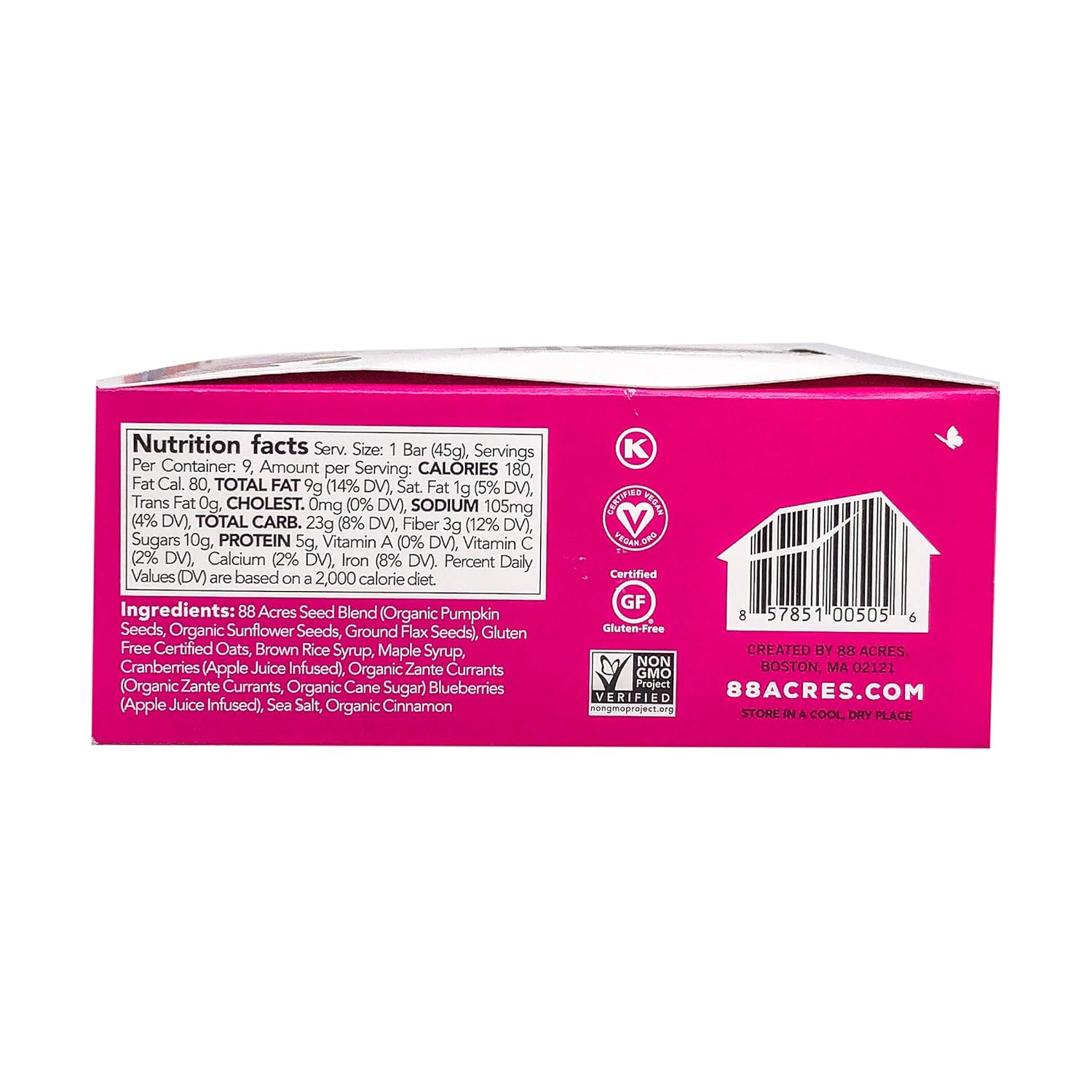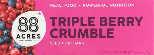 88 Acres Granola Bars, Triple Berry Crumble, 9 Count, School Safe, Allergen Free Seed & Oat Snack Bar, Gluten & Nut Free, Vegan, Non-GMO & Kosher, Individually Wrapped