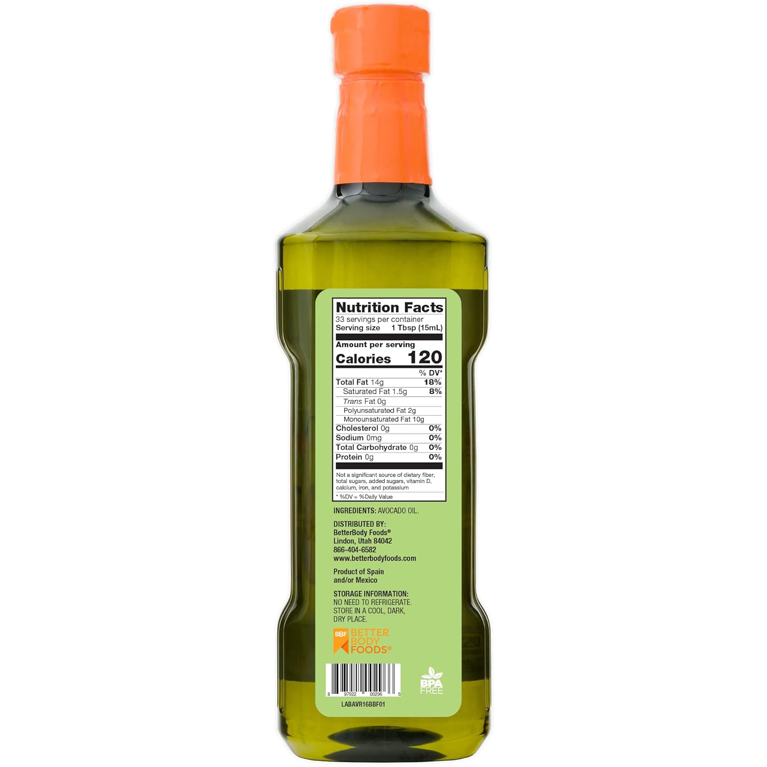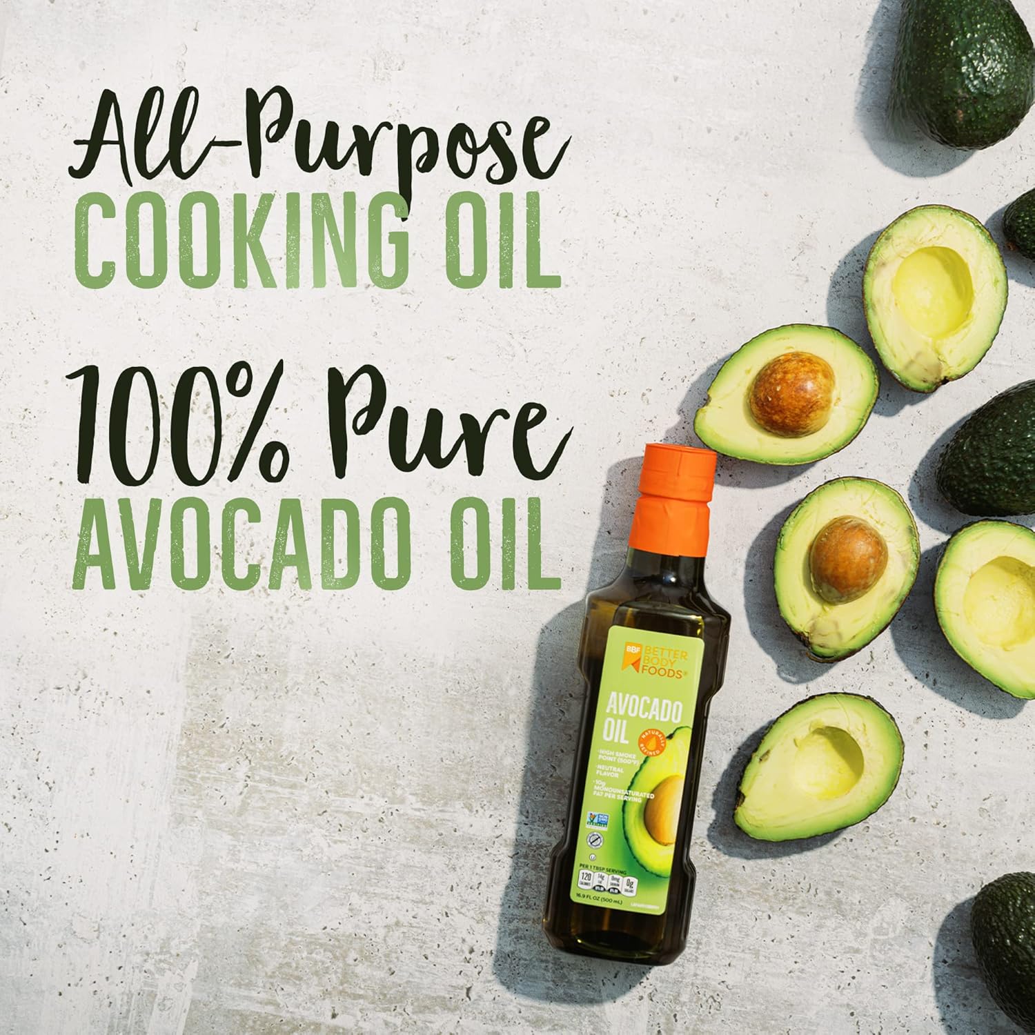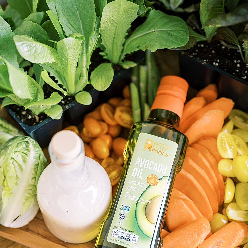 BetterBody Foods Refined AvocadoOil, Non-GMO Cooking Oil, Kosher, Keto and Paleo Diet Friendly, Frying, Baking, AvocadoOil, 500 mL, 16.9 Fl Oz (Pack of 2)