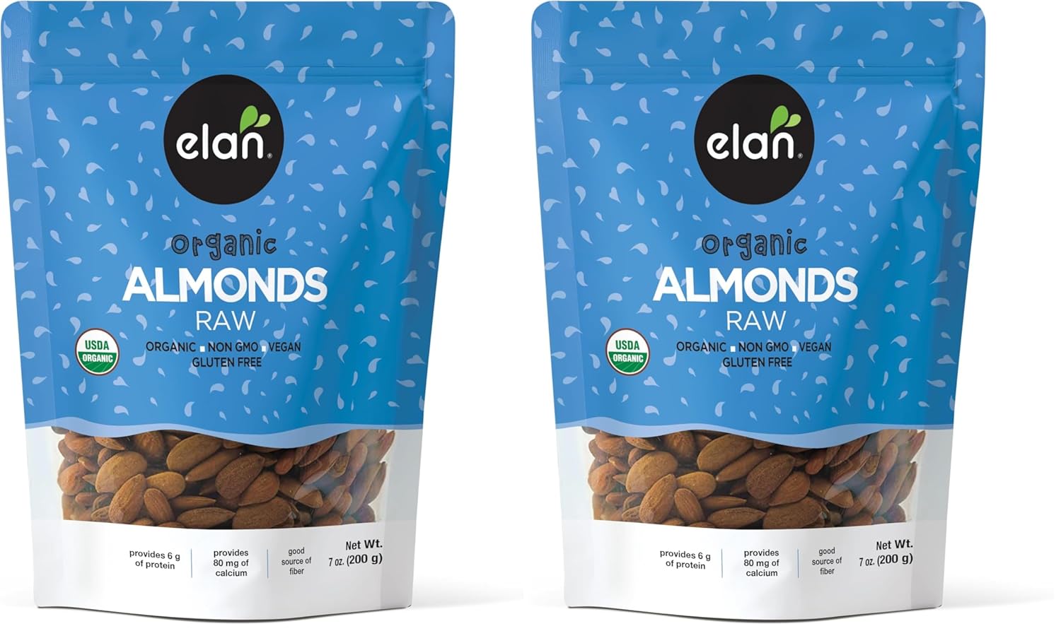 Elan Organic California Raw Almonds, 7.0 oz, Unsalted, Unroasted, Raw Nuts, Non-Gmo, Vegan, Gluten-Free, Kosher, Healthy Snacks