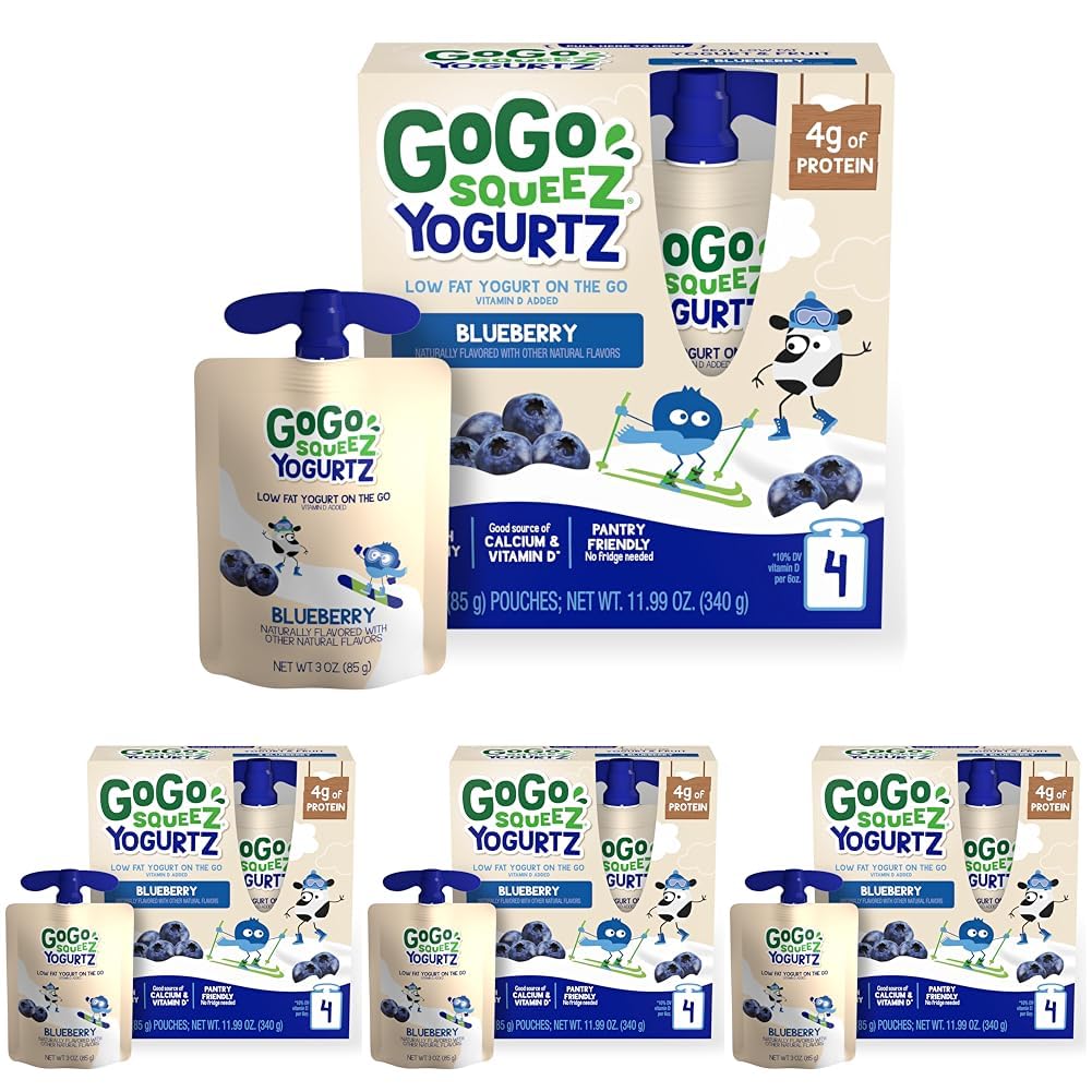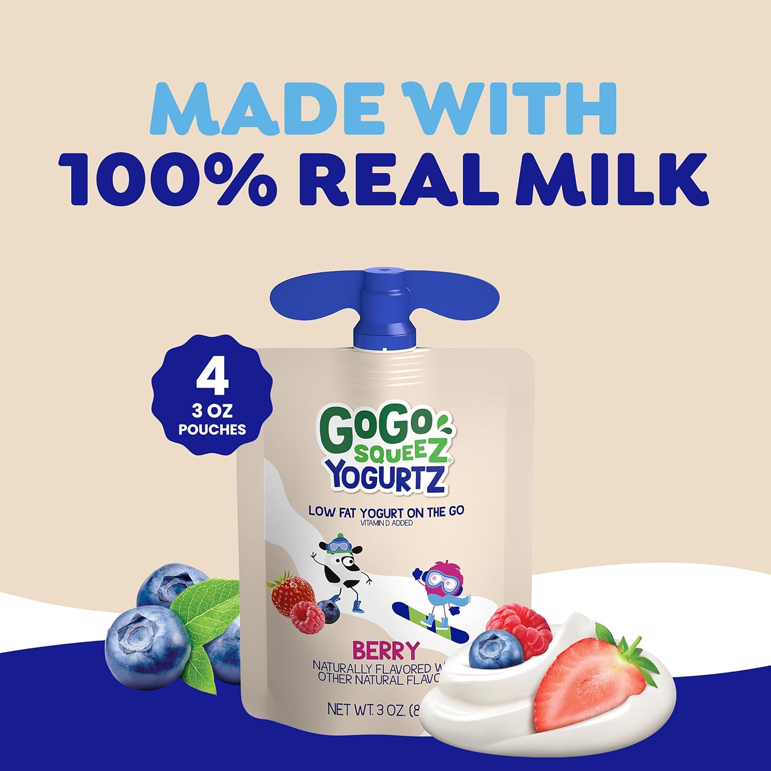 GoGo squeeZ yogurtZ Berry, 3 oz. (4 Pouches) - Kids Snacks Made from Real Yogurt and Fruit - Pantry Friendly Snack, No Fridge Needed - No Preservatives- Kosher Certified - Gluten Free Snacks for Kids