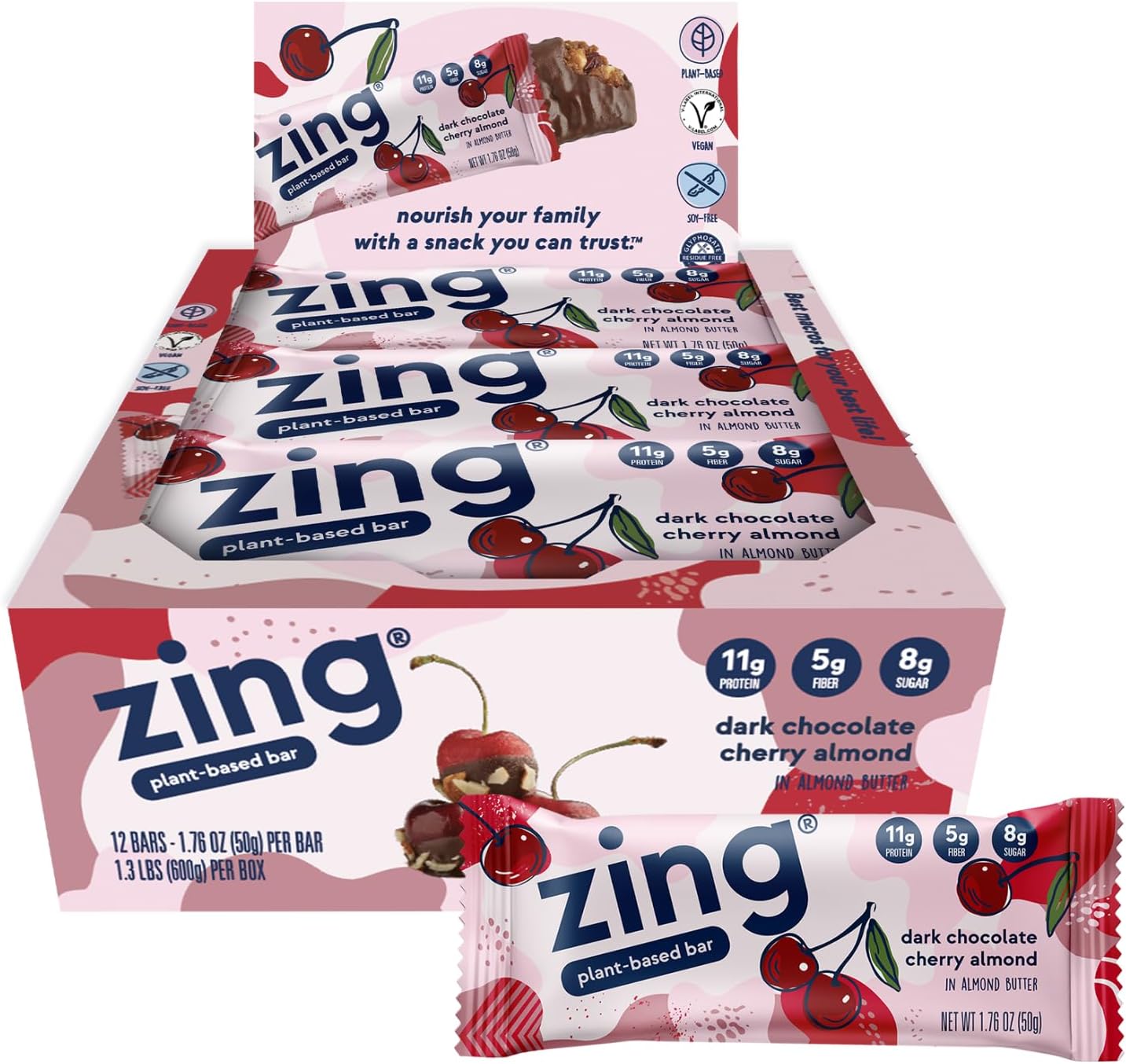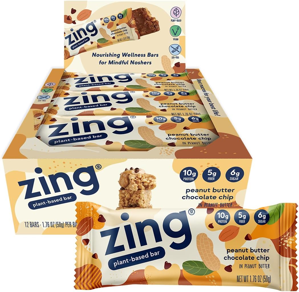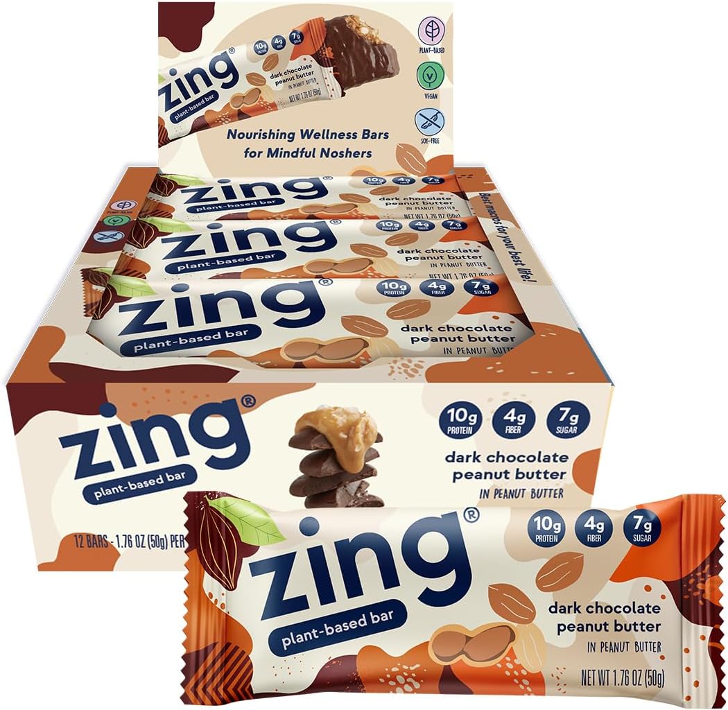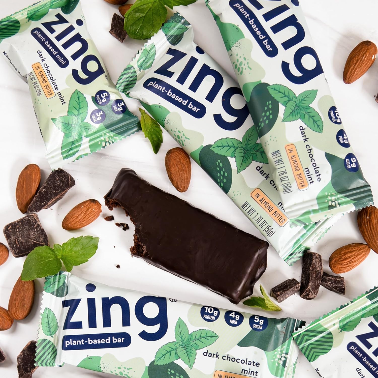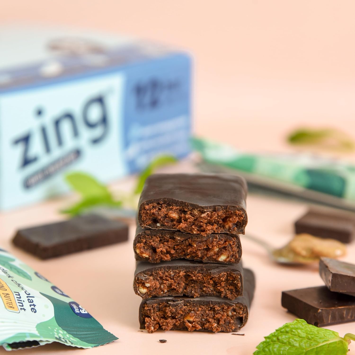 Zing Dark Chocolate Mint Vegan Protein Bars, Gluten Free with High Protein, High Fiber, Dairy Free Nutrition Bars, Plant Based Protein, Kosher, Low Sugar, No Sugar Alcohols - 12 count
